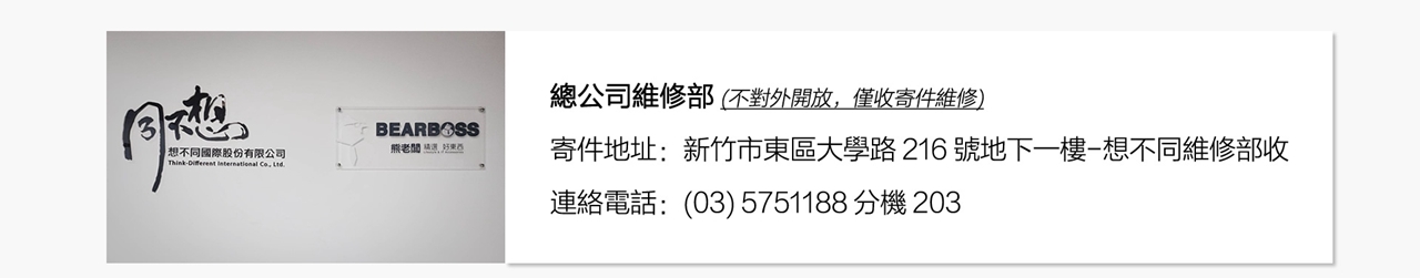 ✎ 非想不同國際股份有限公司(熊老闆)、 合作經銷商之保卡、發票或購買憑證,將不予收件。
