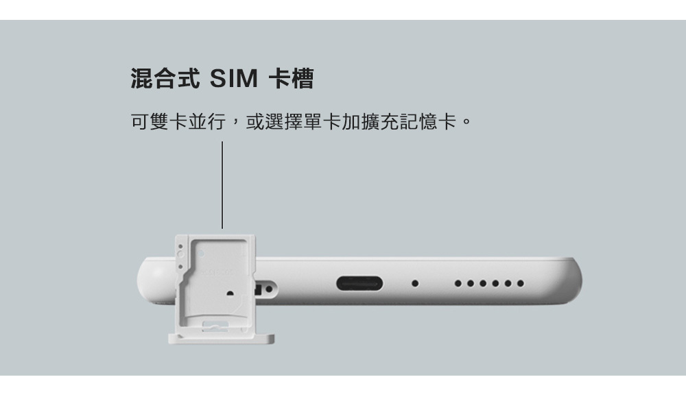 混合式 SIM 卡槽,可插入行動數據 SIM 卡,並支援擴充儲存空間。支援雙卡或記憶卡擴充,最高可擴充至 1TB,輕鬆容納你的整座圖書館。