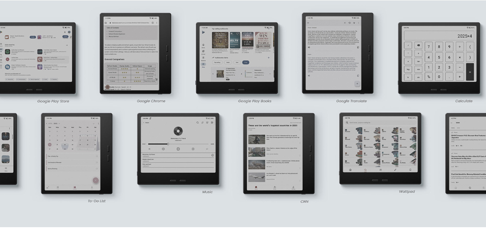 掌握這台閱讀器,開啟無限精彩可能。搭載開放 Android 13 系統,盡情探索 GooglePlay 商店的各式應⽤程式。聽⾳樂、看新聞、冥想放鬆,隨時隨地豐富你的⽣活。