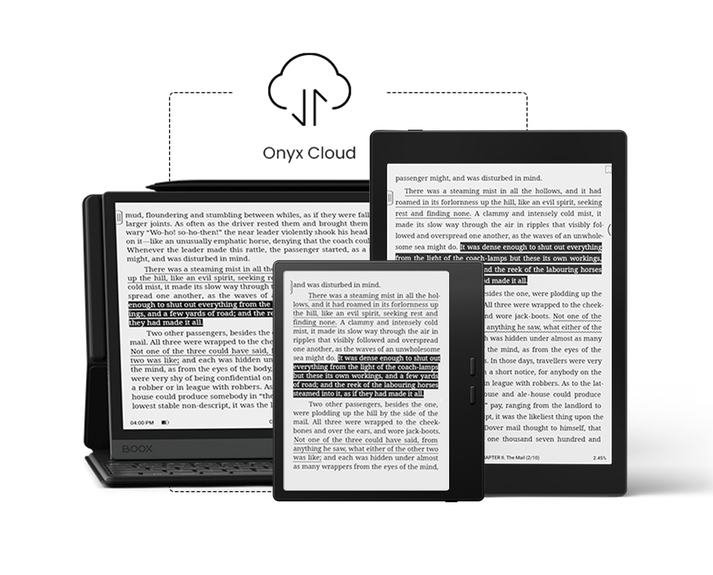 BOOX 提供所有使用者 Onyx Club 雲服務免費使用 10GB 雲端空間,利用 Onyx Cloud 雲服務可以很方便將閱讀器上的手寫筆記同步到電腦上,也可以將在電腦上正在看的網頁立即同步到閱讀器上繼續瀏覽。Onyx Cloud 雲服務讓你輕鬆完成同步作業。