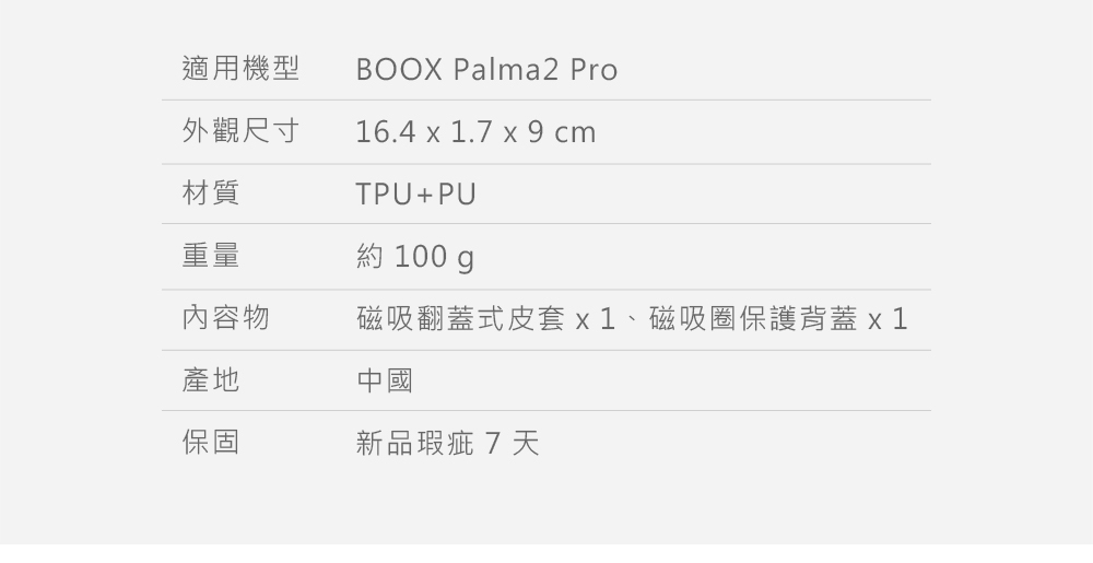 文石 BOOX Palma2 Pro 6.13 吋磁吸分離式皮套結合安全與便利,量身打造的全新翻蓋式磁吸皮套,兼具日常防護與靈活造型。採用磁吸設計,配備可拆式翻蓋,一秒切換不同模式。輕鬆展現專屬品味。更具備喚醒功能(Smart Wake / Sleep),翻蓋即喚醒,讓操作更加便利。