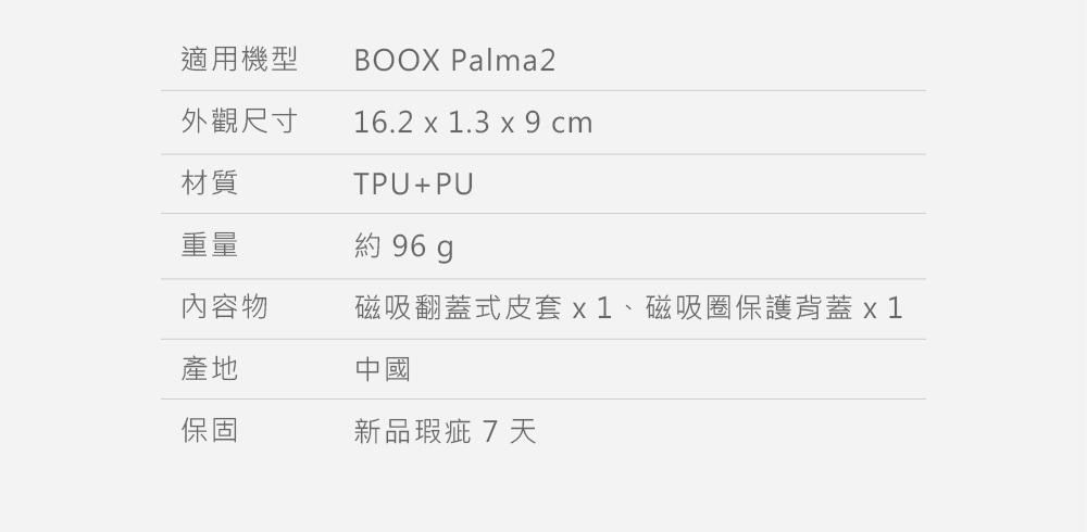 文石 BOOX Palma2 翻蓋式皮套結合安全與便利,量身打造的全新翻蓋式磁吸皮套,兼具日常防護與靈活造型。採用磁吸設計,配備可拆式翻蓋,一秒切換不同保護模式。提供黑色與米白色兩款經典色系,輕鬆展現專屬品味。更具備喚醒功能(Smart Wake / Sleep),翻蓋即喚醒,讓操作更加便利。