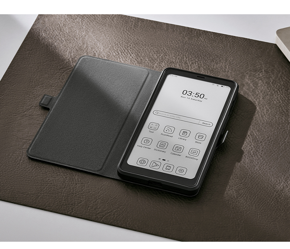 文石 BOOX Palma2 翻蓋式皮套結合安全與便利,為電子閱讀器提供全方位保護。精緻外觀與卓越功能兼具,翻蓋設計不僅確保全機保護,同時是靈活的支架,無論橫向或直向皆能輕鬆閱讀。更具備喚醒功能(Smart Wake / Sleep),翻蓋即喚醒,讓操作更加便利。